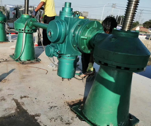 螺桿式啟閉機(jī)用于控制水道河流中的閘門啟閉裝置。螺桿式啟閉機(jī)是眾多啟閉機(jī)中的一種機(jī)型,由電機(jī),螺桿,底座,搖臂,齒輪箱和中間的傳動軸組成。螺桿的下部與閘門的頂部吊耳相連接,而上端與軸承螺母相連。這樣可以實(shí)現(xiàn)通過旋轉(zhuǎn)螺桿的搖臂,使得螺桿和閘門一起上升或者下降。